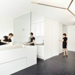 Voor het Parijse architectenbureau FREAKS maakte ik een armatuur op maat voor een super compact appartement in Genève. Freaks deelde de ruimte in tweeën; een groot meubel herbergt koken, wassen, slapen en opbergen. De andere helft is open, hier wordt gezeten en gegeten. Ze zochten een oplossing voor de verlichting die aansluit bij deze heldere opzet, en bij hun minimalistische ontwerp.